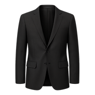 Estou vestindo um paletó preto, camisa preta, uma gravata vermelha, calças pretas, um cinto de couro preto e um relógio.